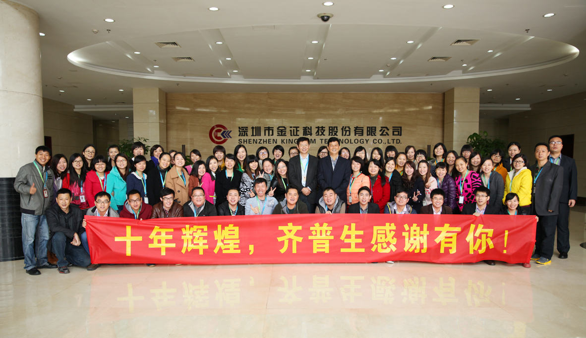 2013年12月27日晚,金證股份舉辦了隆重的上市十周年暨成立十五周年慶典晚會,齊普生作為嘉賓應(yīng)邀出席,并提前參與短片錄制,送上真摯的祝福!齊普生全體員工祝愿金證股份在新的一年,財(cái)源廣進(jìn),馬到成功,再創(chuàng)輝煌!
